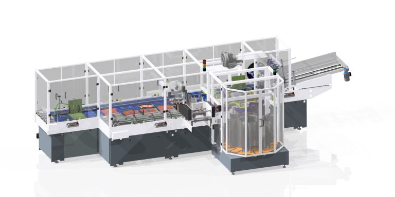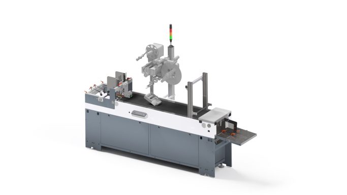 Designed with one or two pick & place feeders, this machine has a great flexibility. Indeed, it can insert, place and glue all types of rigid and flexible elements (pre-cut or from roll) onto carriers or carton boards. The machine also includes a folding and gluing station in line.